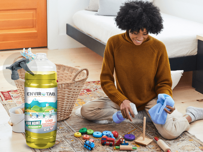 Colds and sniffles seem to move quickly through a community, especially when it has a daycare center in town. There is nothing better for passing along the sniffles than shared toys and there's nothing better for stopping the spread of colds and sniffles than cleaning toys with Envirotab and microfiber.