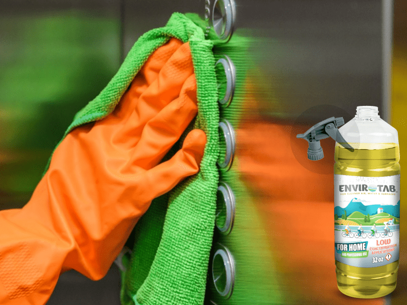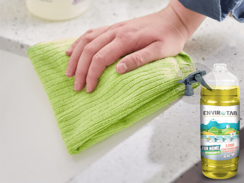Smells, even good ones, will linger in a kitchen and may not always be compatible with one another. Who wants the smell of garlic to leech into a rolled-out pie crust? Or onions to seep into your cookies? Making a habit of spraying and wiping down surfaces with Envirotab and microfiber will eliminate the odors!