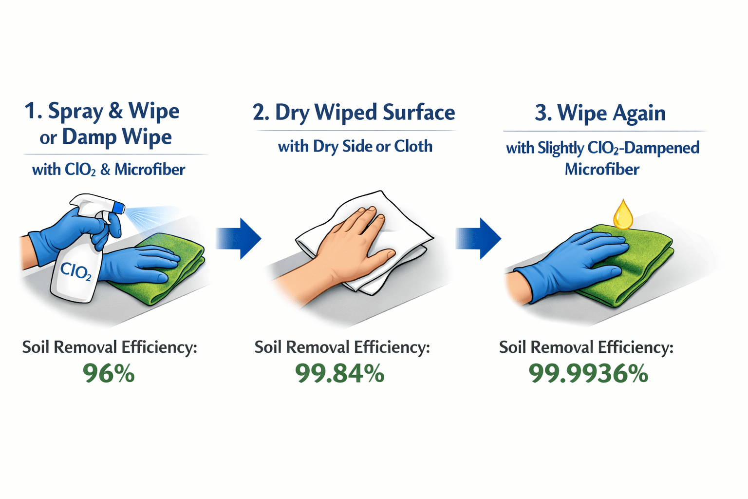 Modern cleaning is no longer about simply killing germs—it’s about physically removing microscopic soil and bioburden from surfaces without leaving harmful residues behind. When Envirotab chlorine dioxide solutions are paired with high-quality microfiber cloths and mops, the result is a system that dramatically outperforms traditional chemical-heavy cleaning methods. This page explains why chemistry alone is not enough, how microfiber amplifies Envirotab’s effectiveness, and why this combination delivers the highest achievable level of real-world cleanliness across homes, healthcare, fitness, food service, and commercial environments.